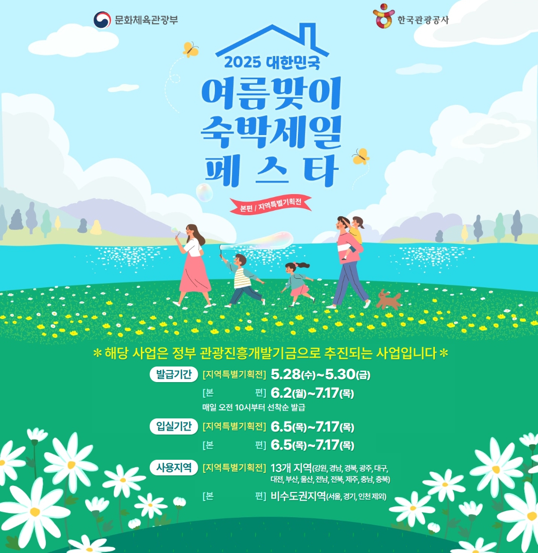 정부가 여름휴가철을 맞아 국내 숙박비를 팍팍 할인해 주는 특별 이벤트를 준비했어요. 바로 2025 대한민국 여름맞이 숙박세일페스타입니다! 누구나 신청만 하면 숙박요금을 최대 5만 원까지 할인받을 수 있어요. 누구나 3분 만에 신청하고 사용하는 방법을 알 수 있습니다. 근데 매일 선착순 신청 가능 하다고 하니 놓치지 마세요!